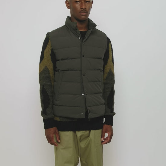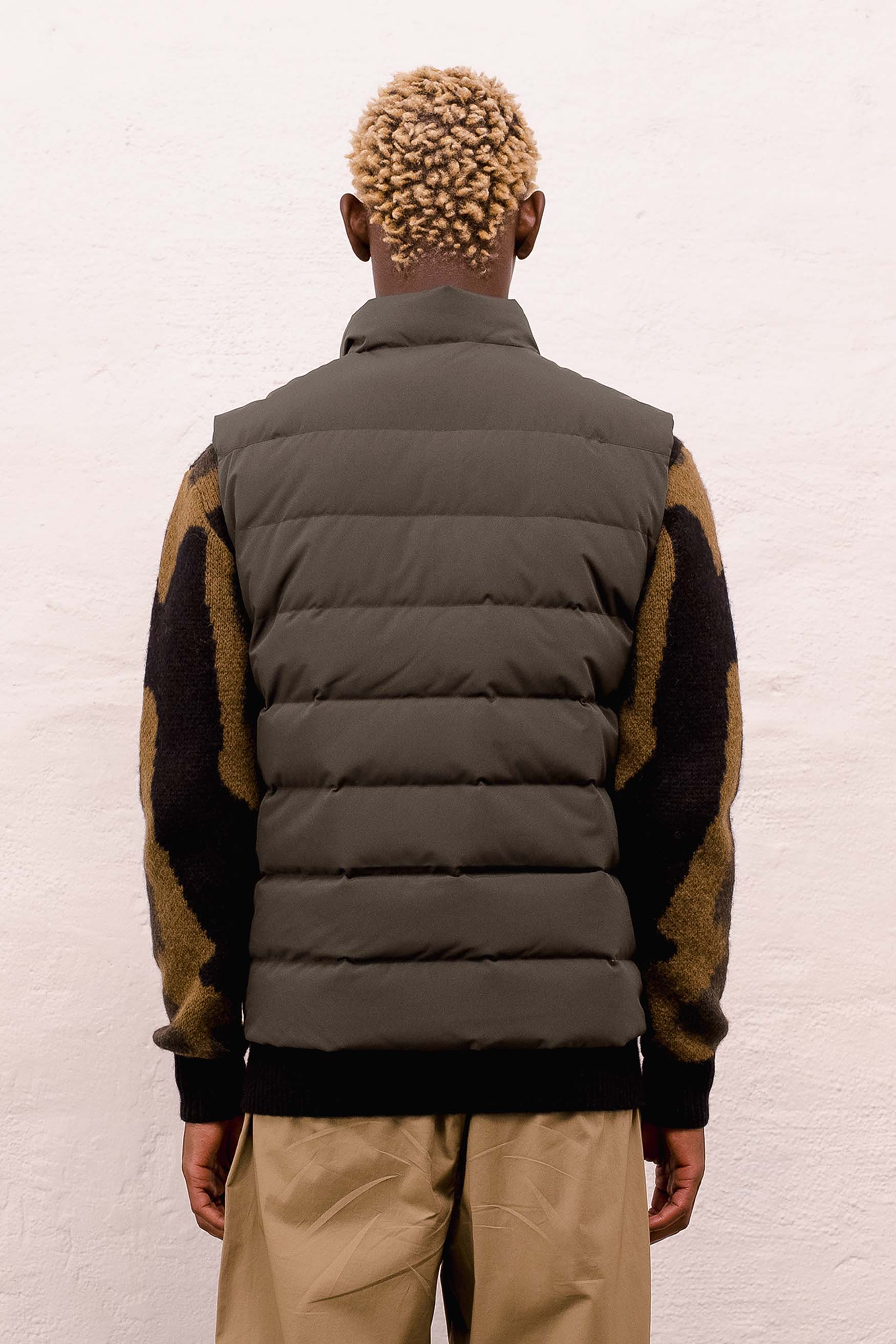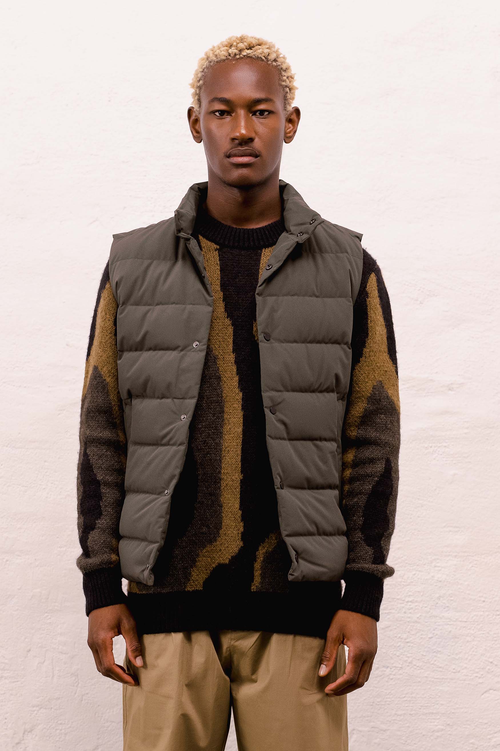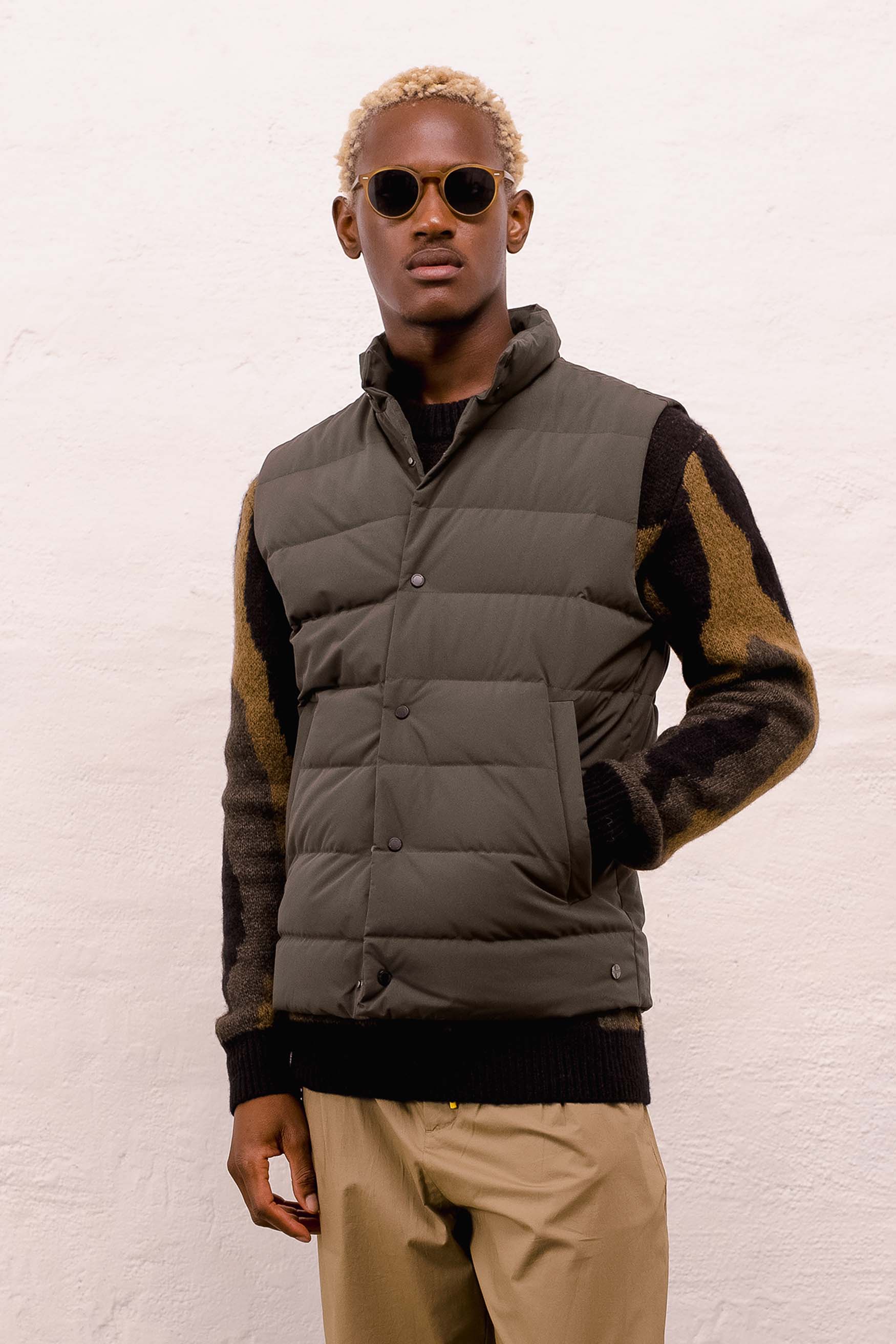 A lightweight down vest with press button front closure. We skipped the front zipper for a relaxed feeling and multiple options for styling. Abel is filled with sustainable down for a puffy look and great core warmth. There are two waist pockets on the outside and one chest pocket on the inside. All pockets have zippers for safe storage. Abel can be worn year-round, depending on the weather and additional clothes worn.