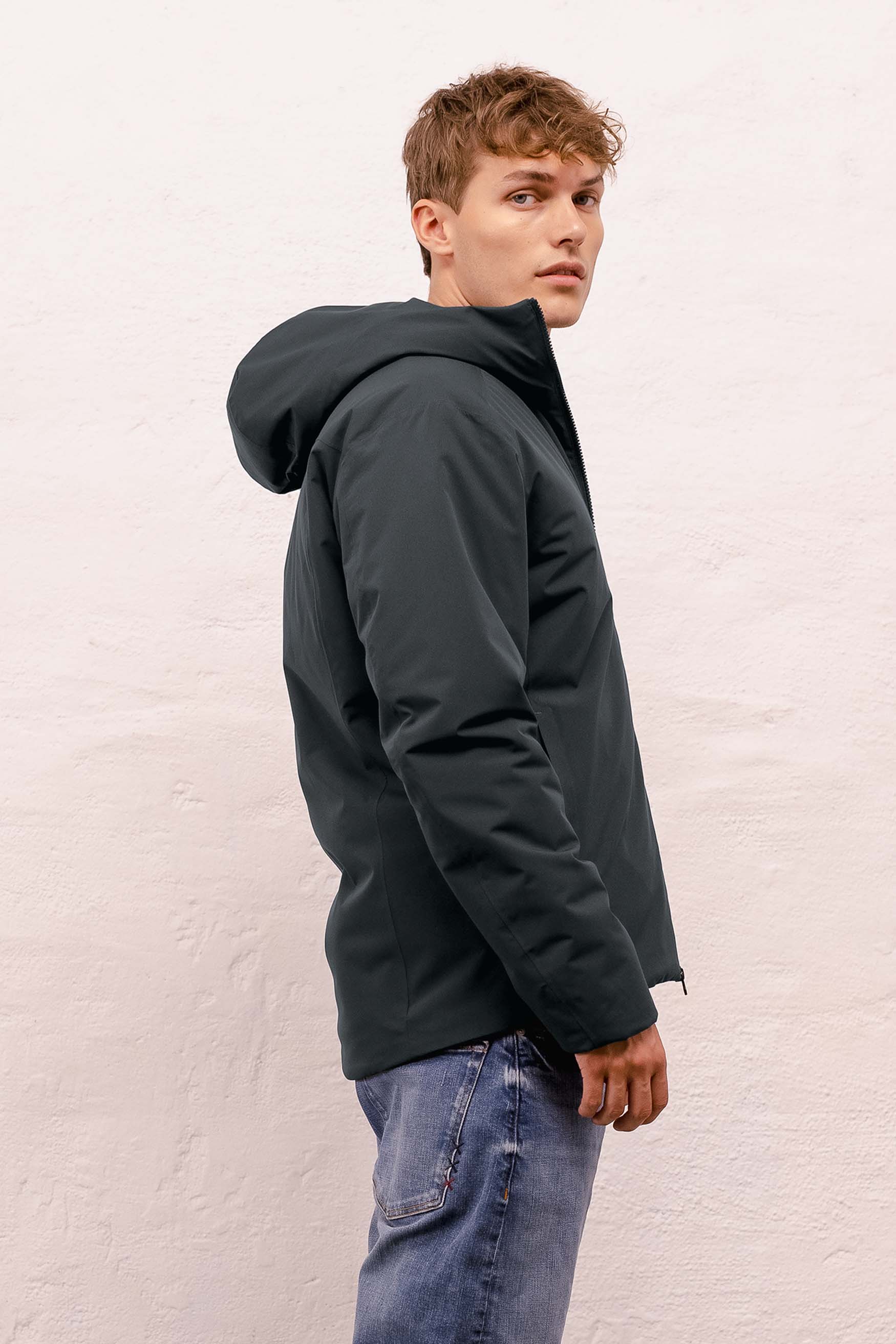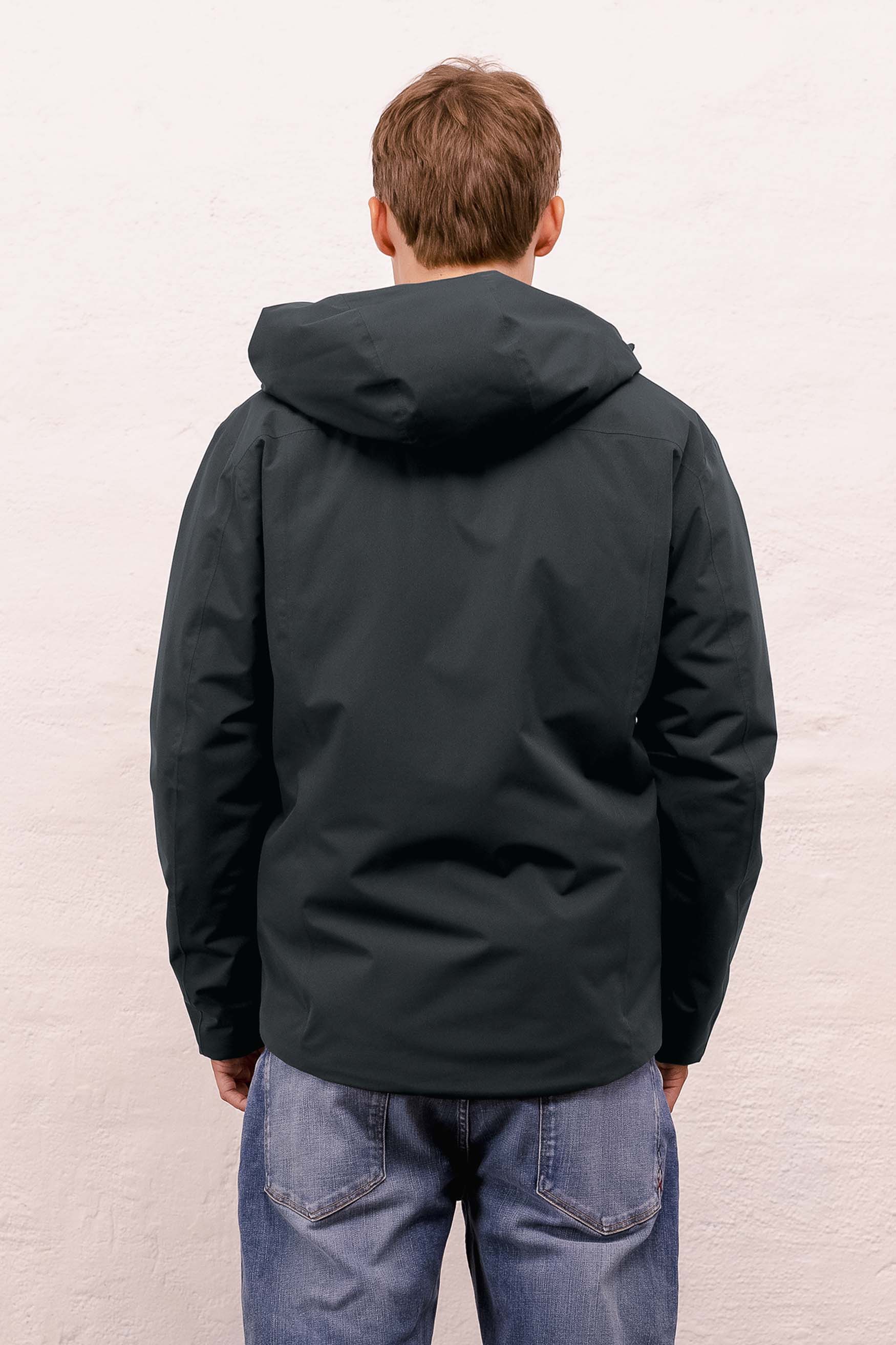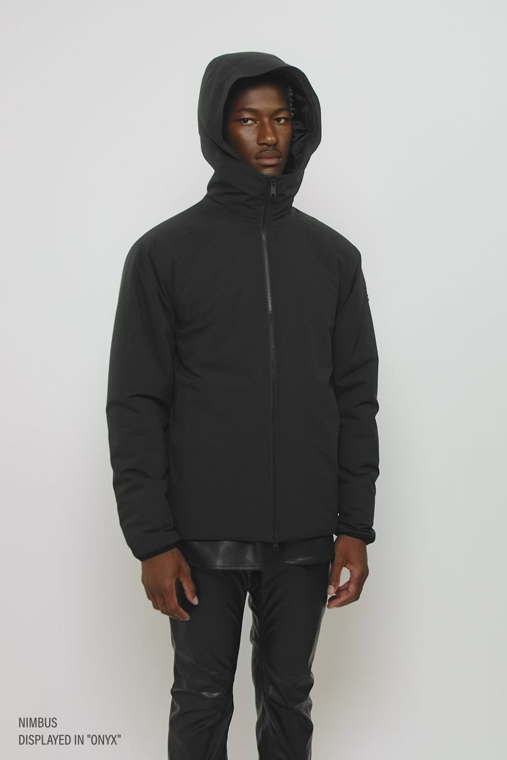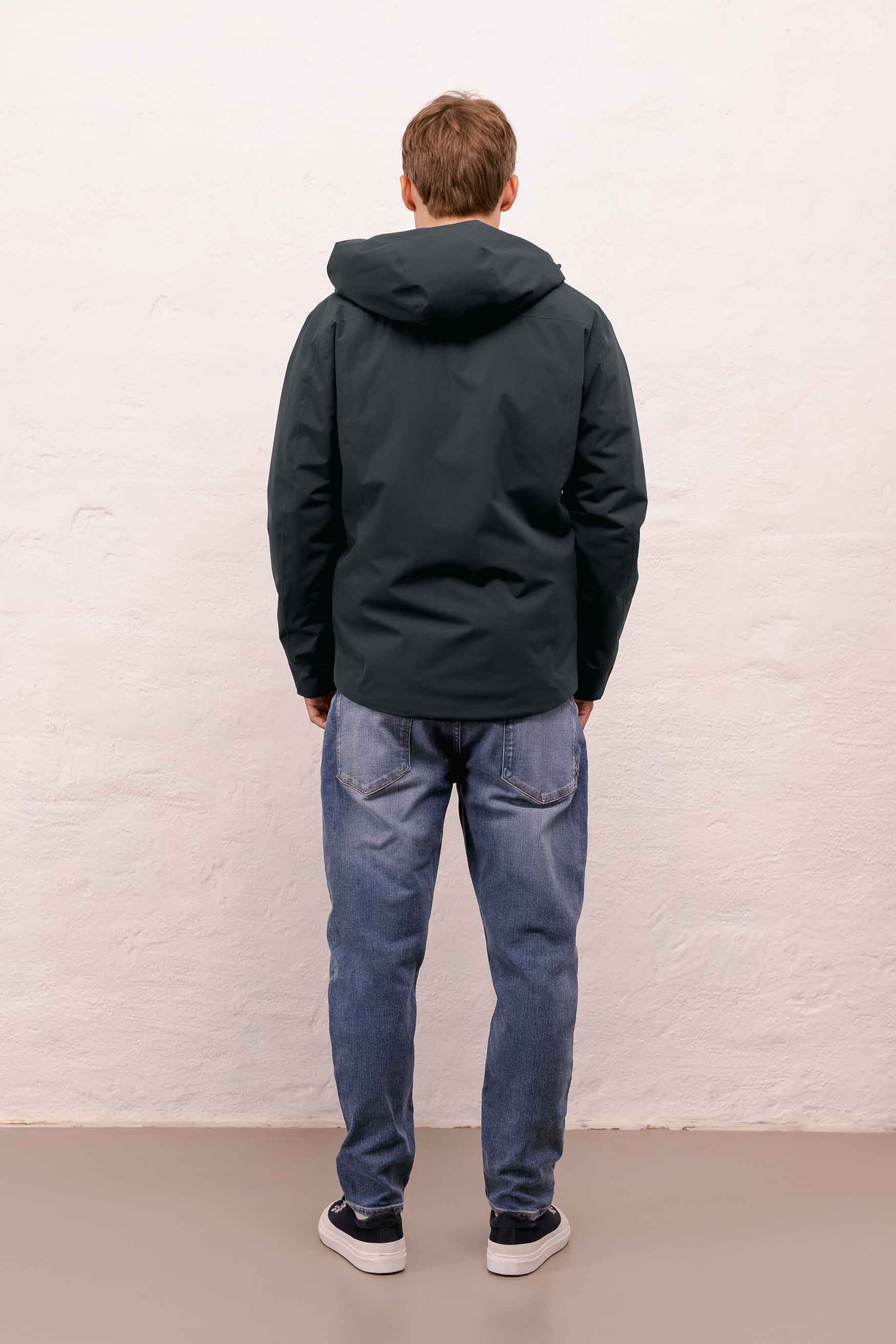 Nimbus is a Fitted jacket, meaning that it is designed to follow the body's natural lines without tapering. Fitted is a versatile shape that feels slightly narrower than a regular fit but with more room than a slim fit.