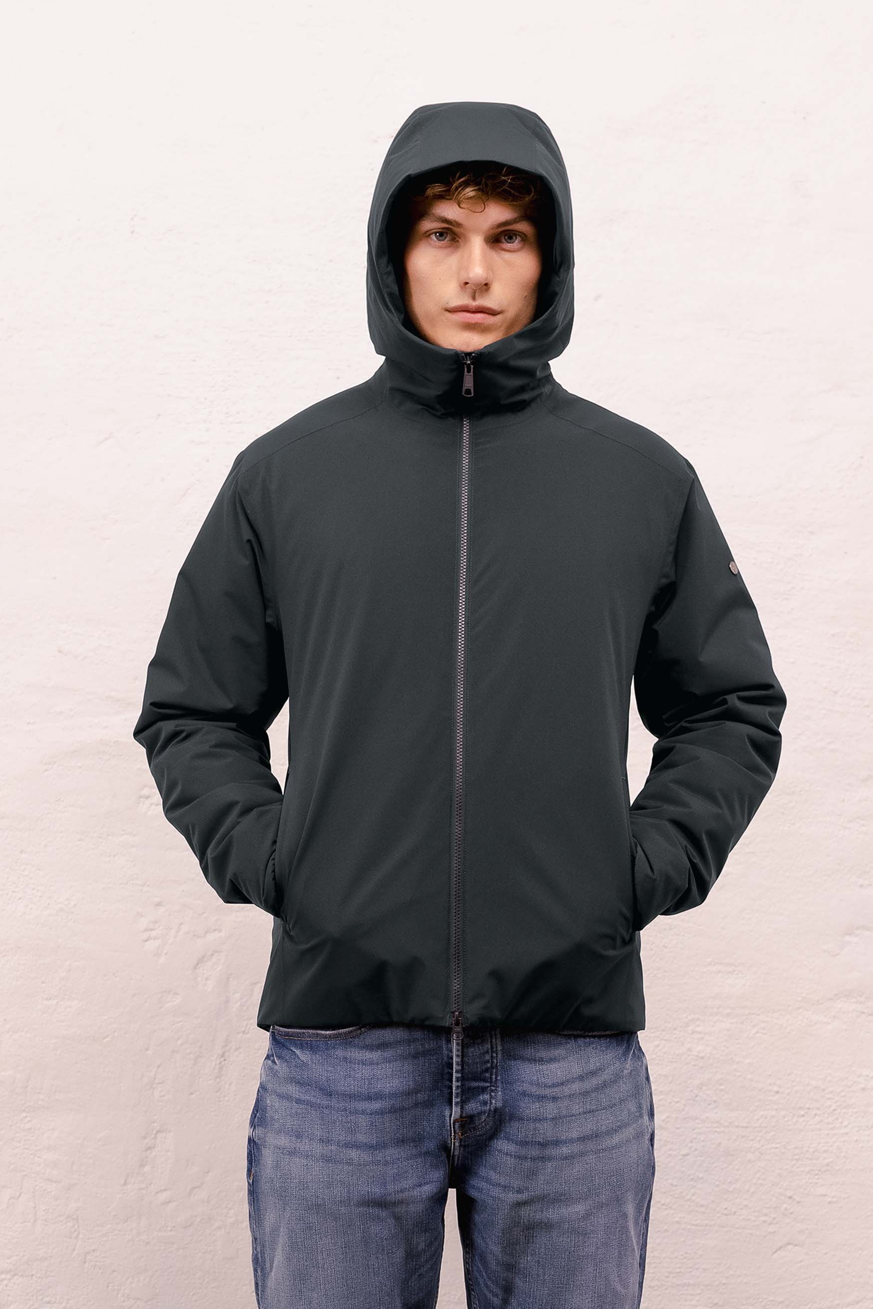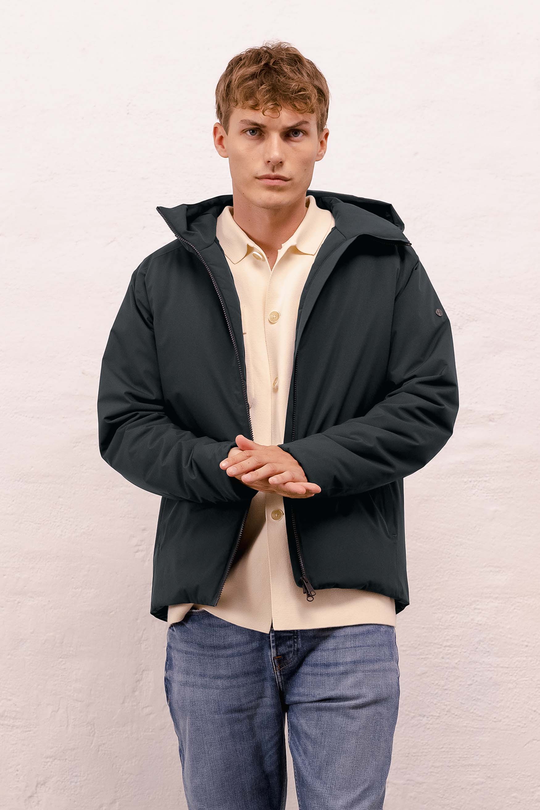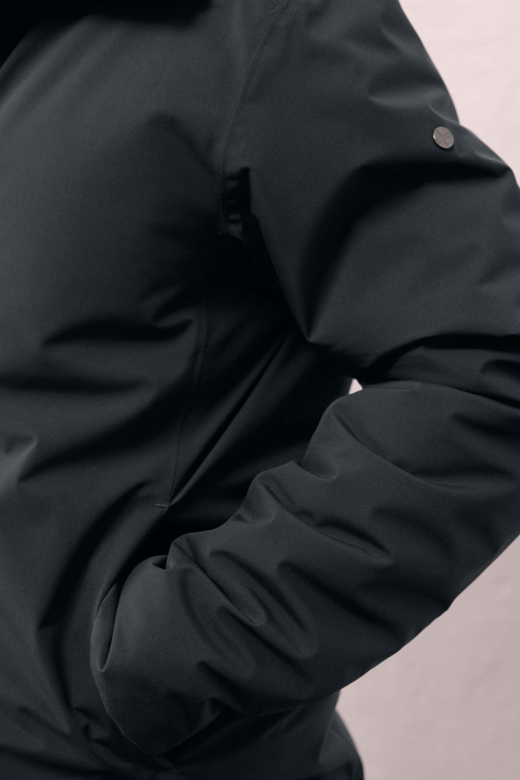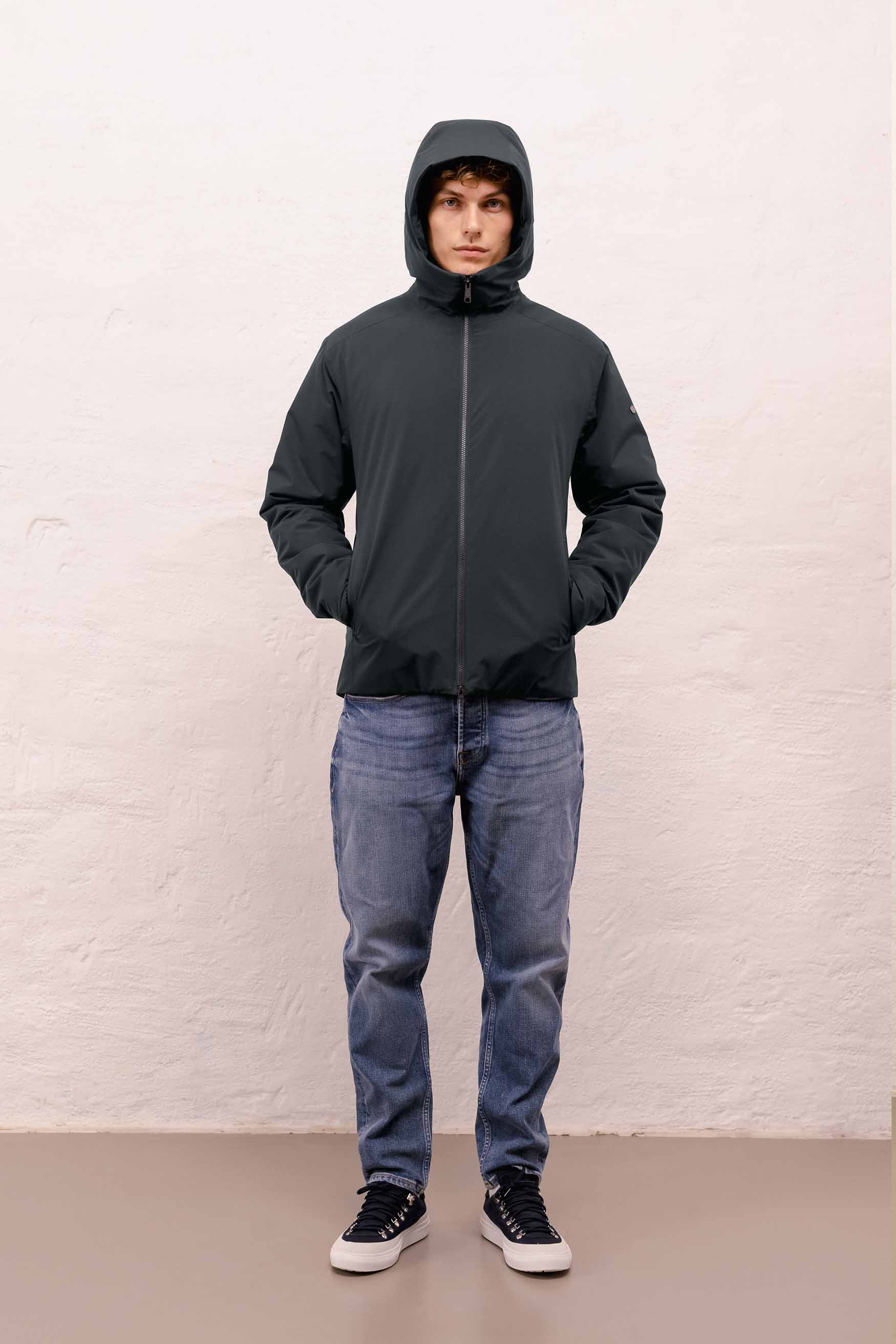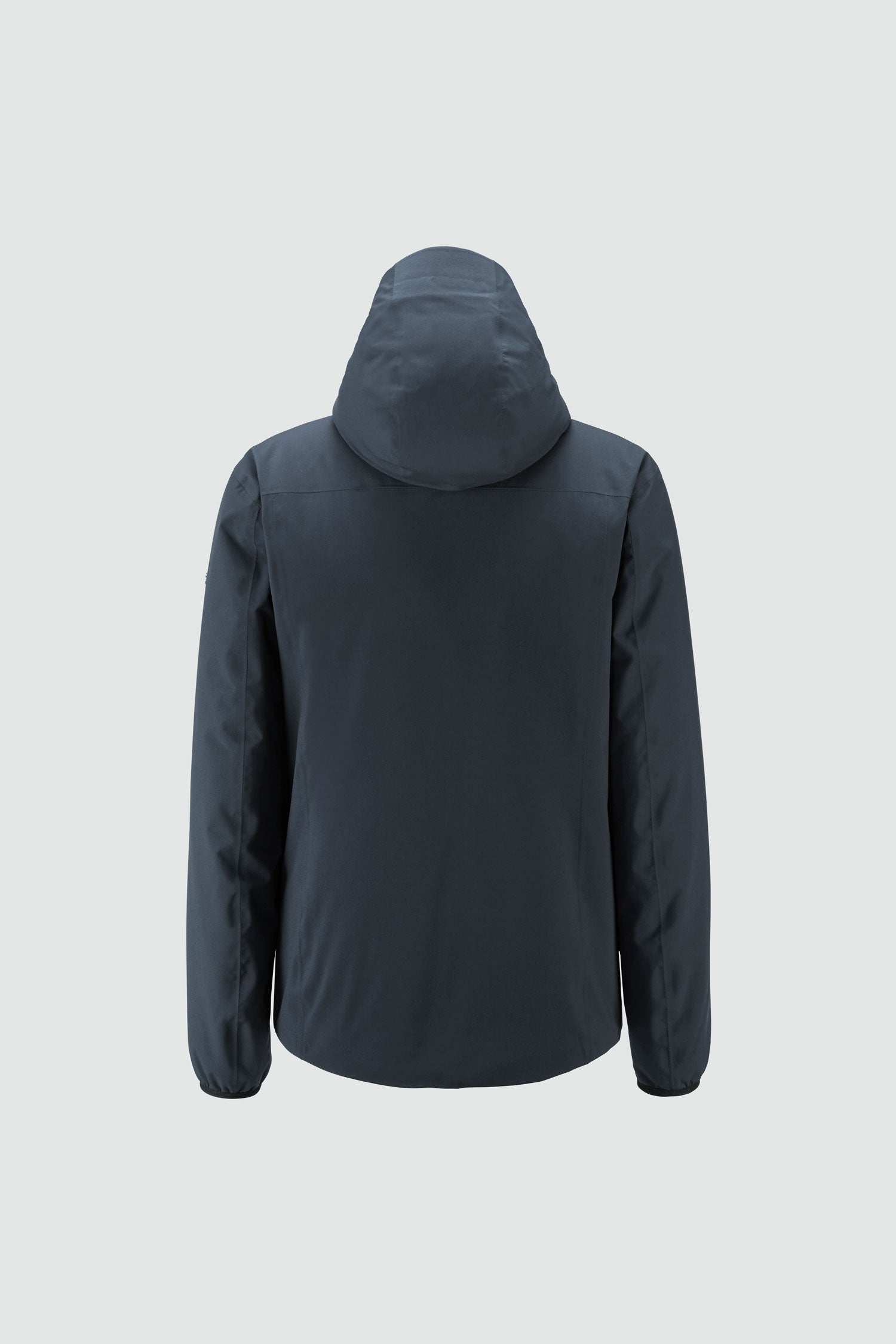 Nimbus is a Fitted jacket, meaning that it is designed to follow the body's natural lines without tapering. Fitted is a versatile shape that feels slightly narrower than a regular fit but with more room than a slim fit.