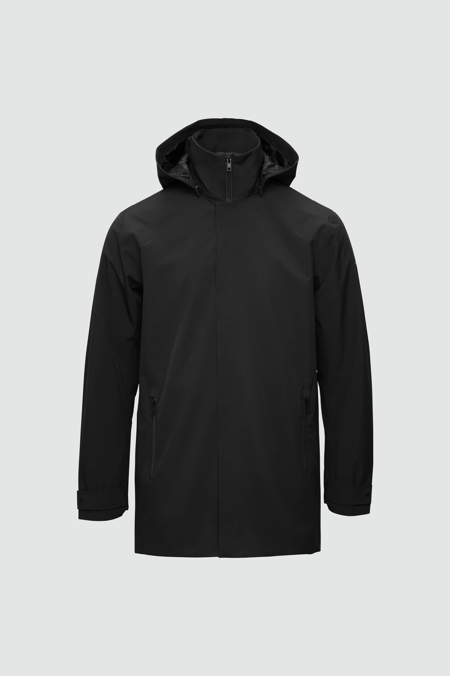 Range is a clean city coat with a fitted silhouette. We used a 100% wind- and waterproof medium-weight stretch fabric with seam-sealed construction to create a highly functional all-season style. Wear Range with your favorite layers underneath, and you will have a good jacket for spring, summer, autumn, and mild winter days. The detachable hood is designed for days when it won’t stop pouring. The clean and minimalistic design means you can use Range in formal and informal settings — as your new favorite business coat or on a trip to your cabin on a windy Friday afternoon.