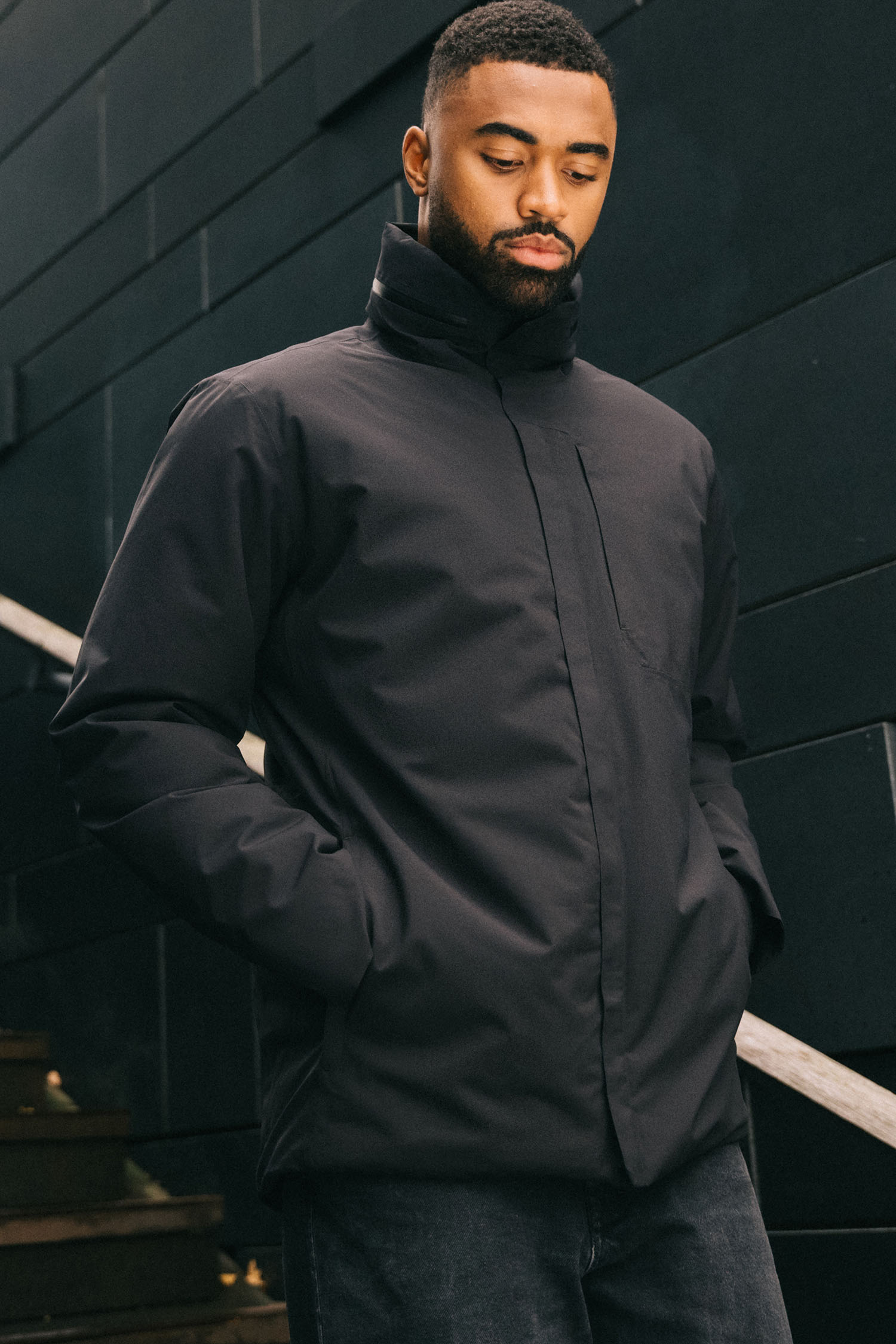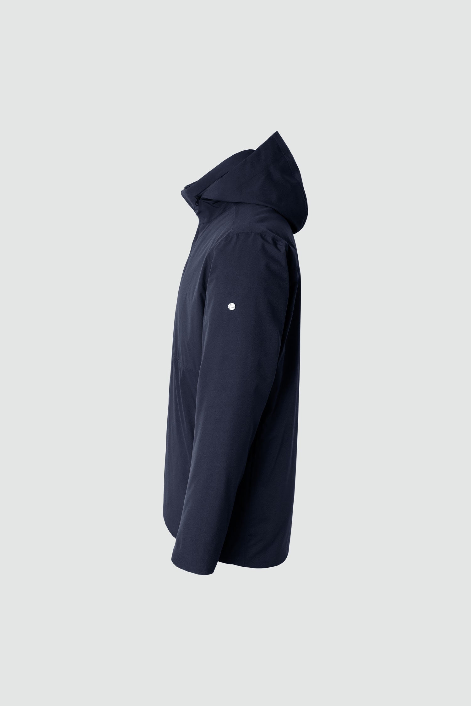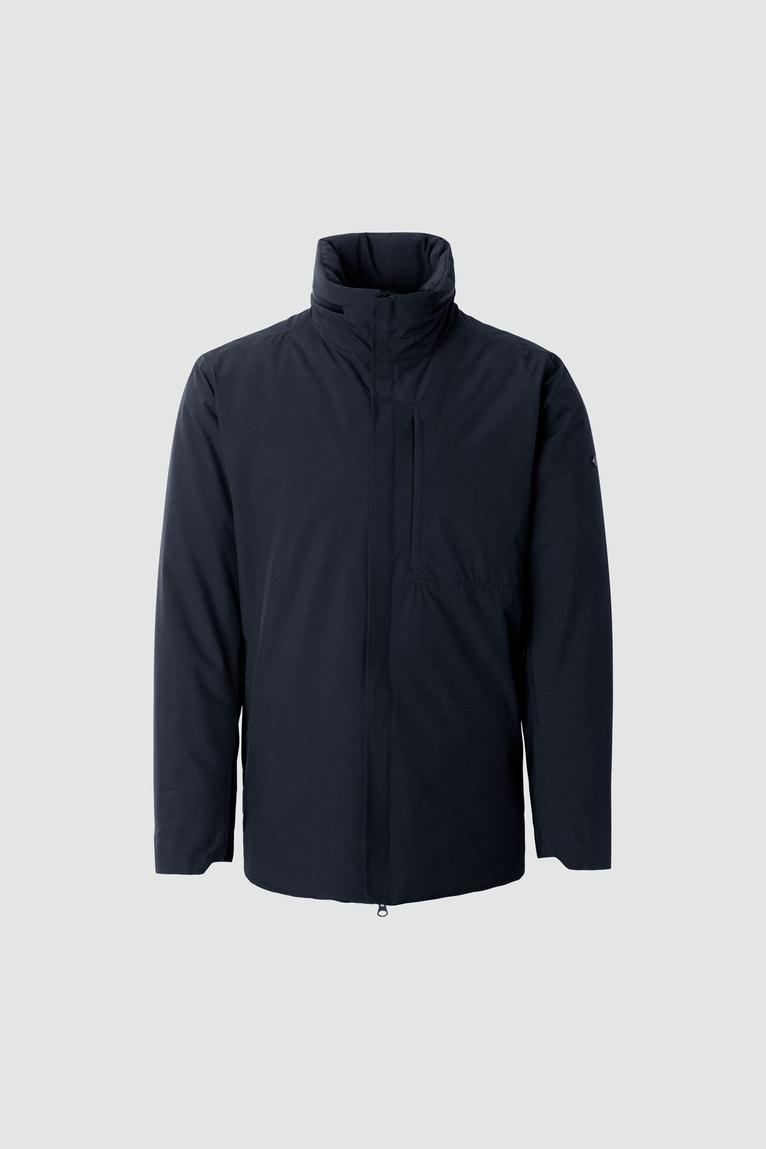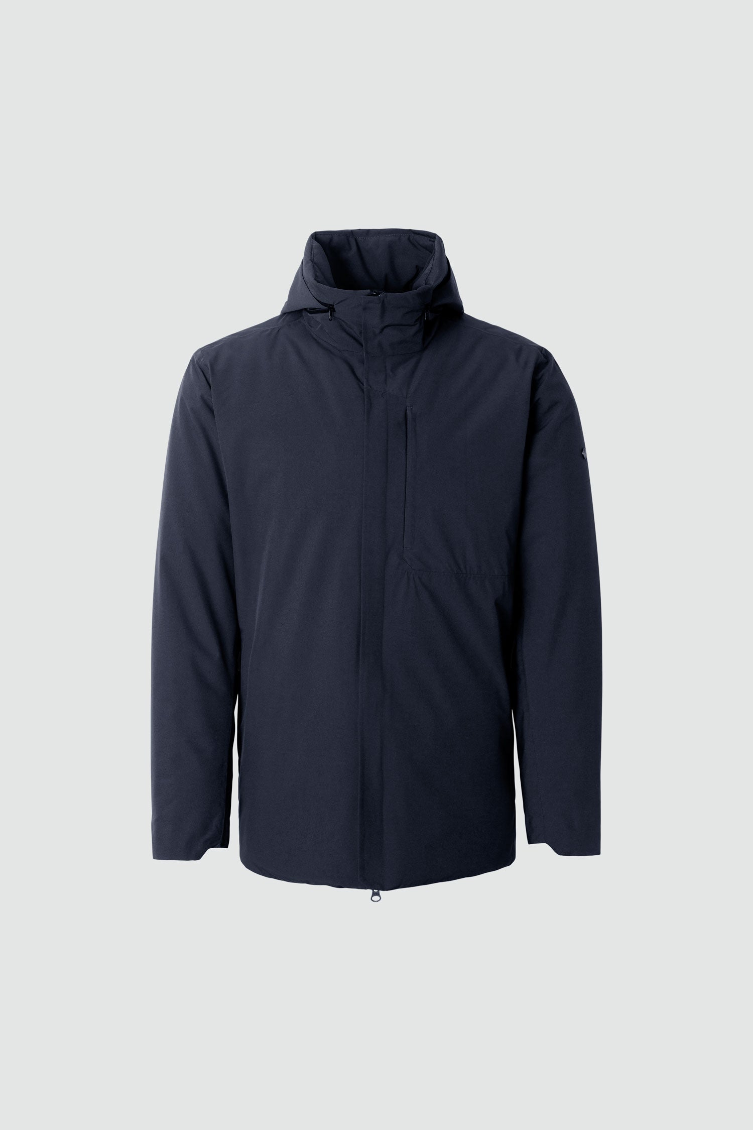 SixtyFive is a short and lightweight jacket with a versatile look that can easily be paired with your style —good from early fall to late spring. The bottom of the jacket is cut straight in the front but with a slightly longer and rounded ending in the back.We've incorporated a chest pocket that serves both practical and visual functions.We have used 120 gsm of Thermore EcoDown in the body and 80 gsm in the sleeves. SixtyFive has a packable hood in the collar, which opens and closes with two zipper pullers on a reverend Coil Aquaguard zipper.