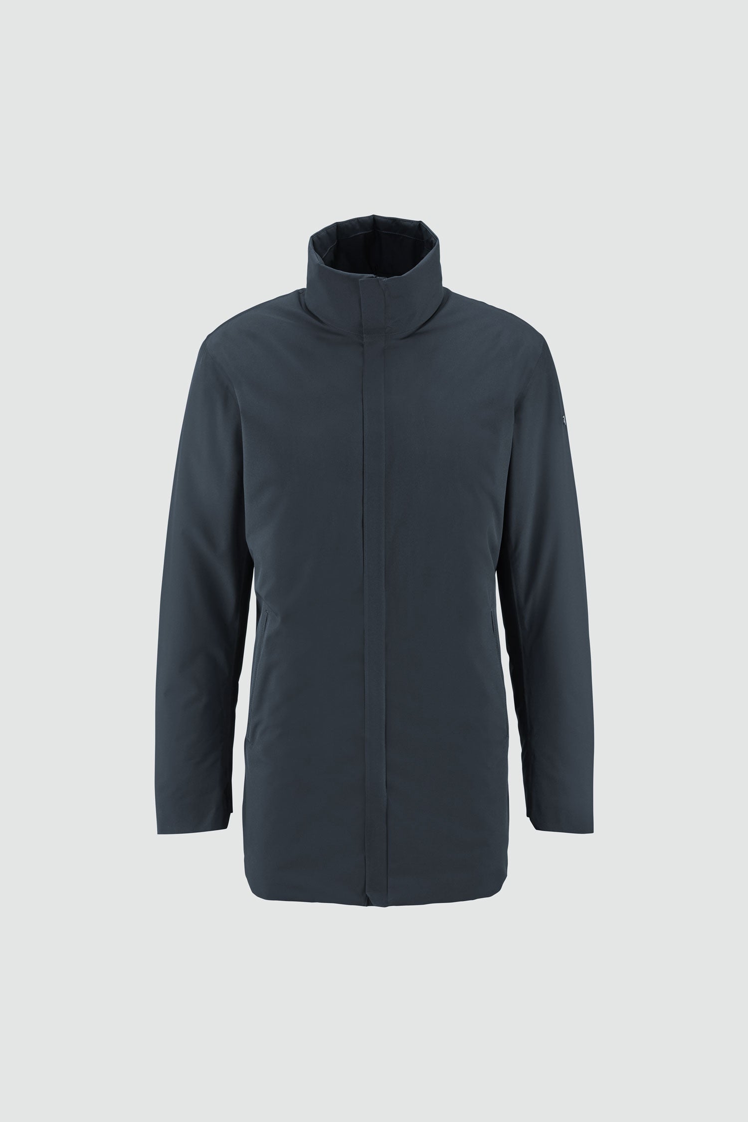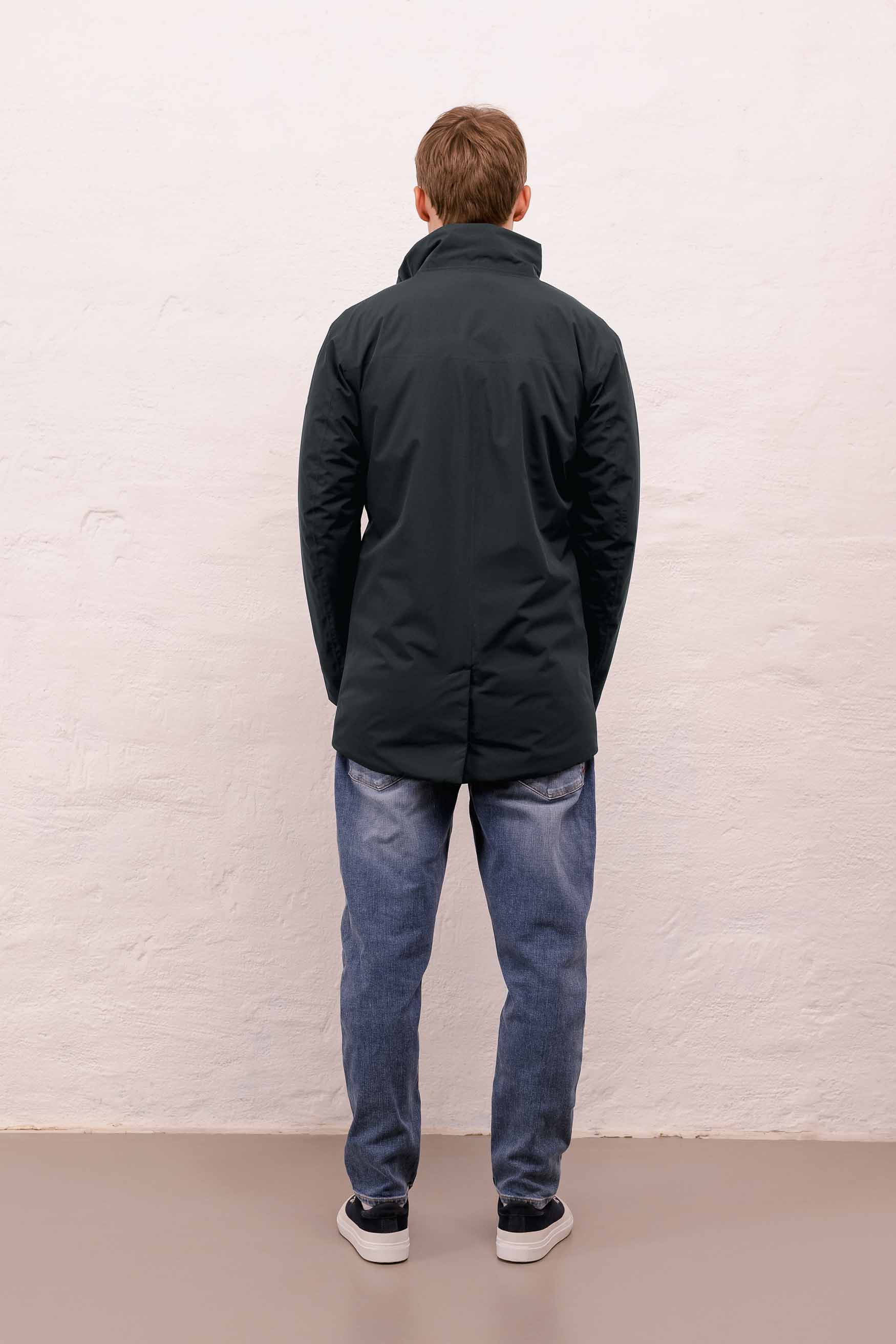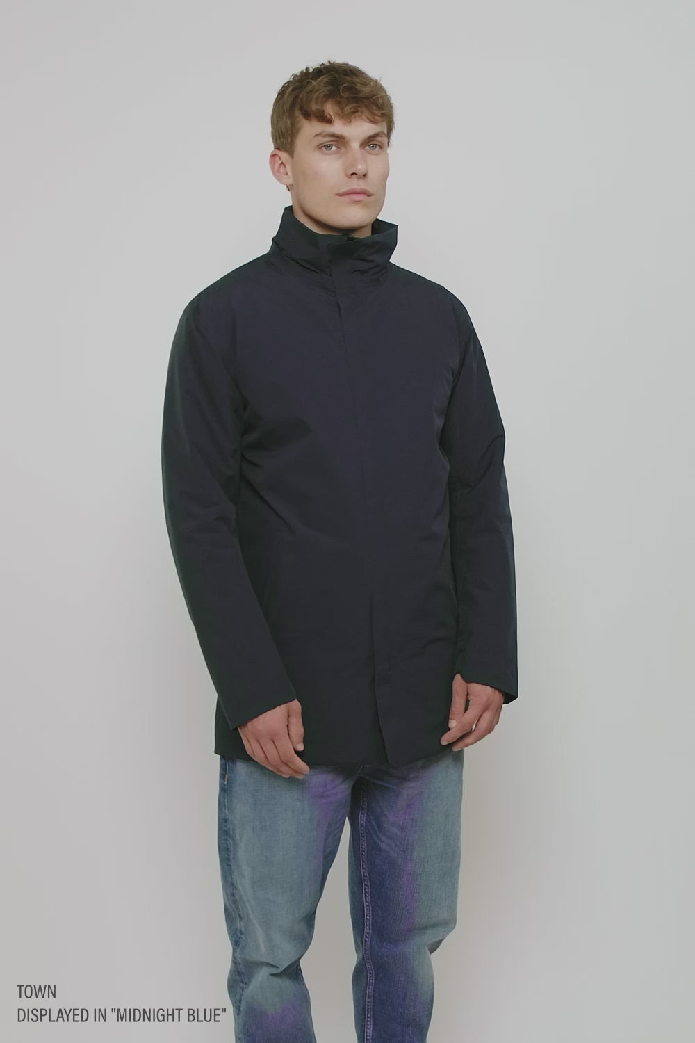 Town is a Fitted coat, meaning that it is designed to follow the body's natural lines without tapering. Fitted is a versatile shape that feels slightly narrower than a regular fit but with more room than a slim fit.