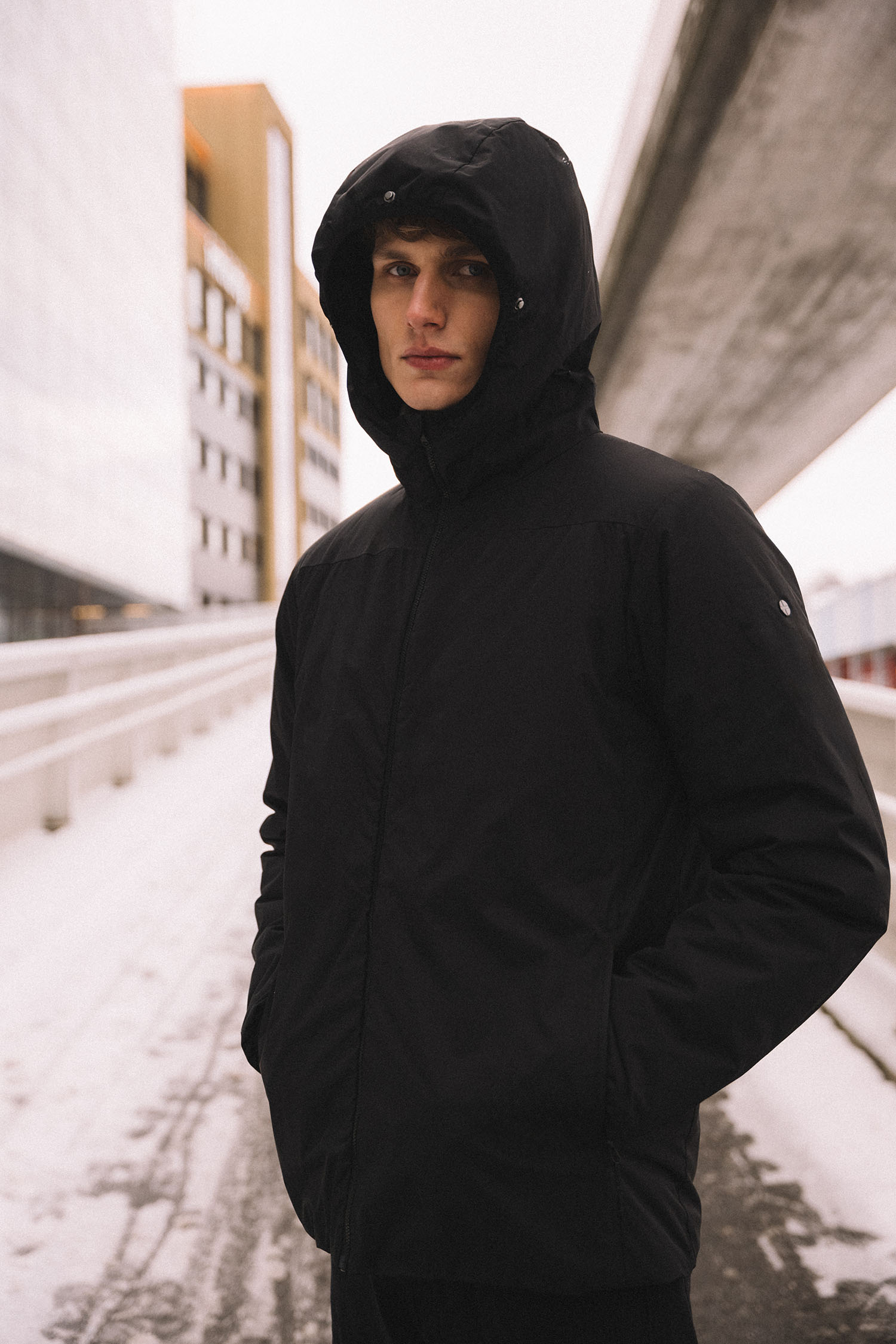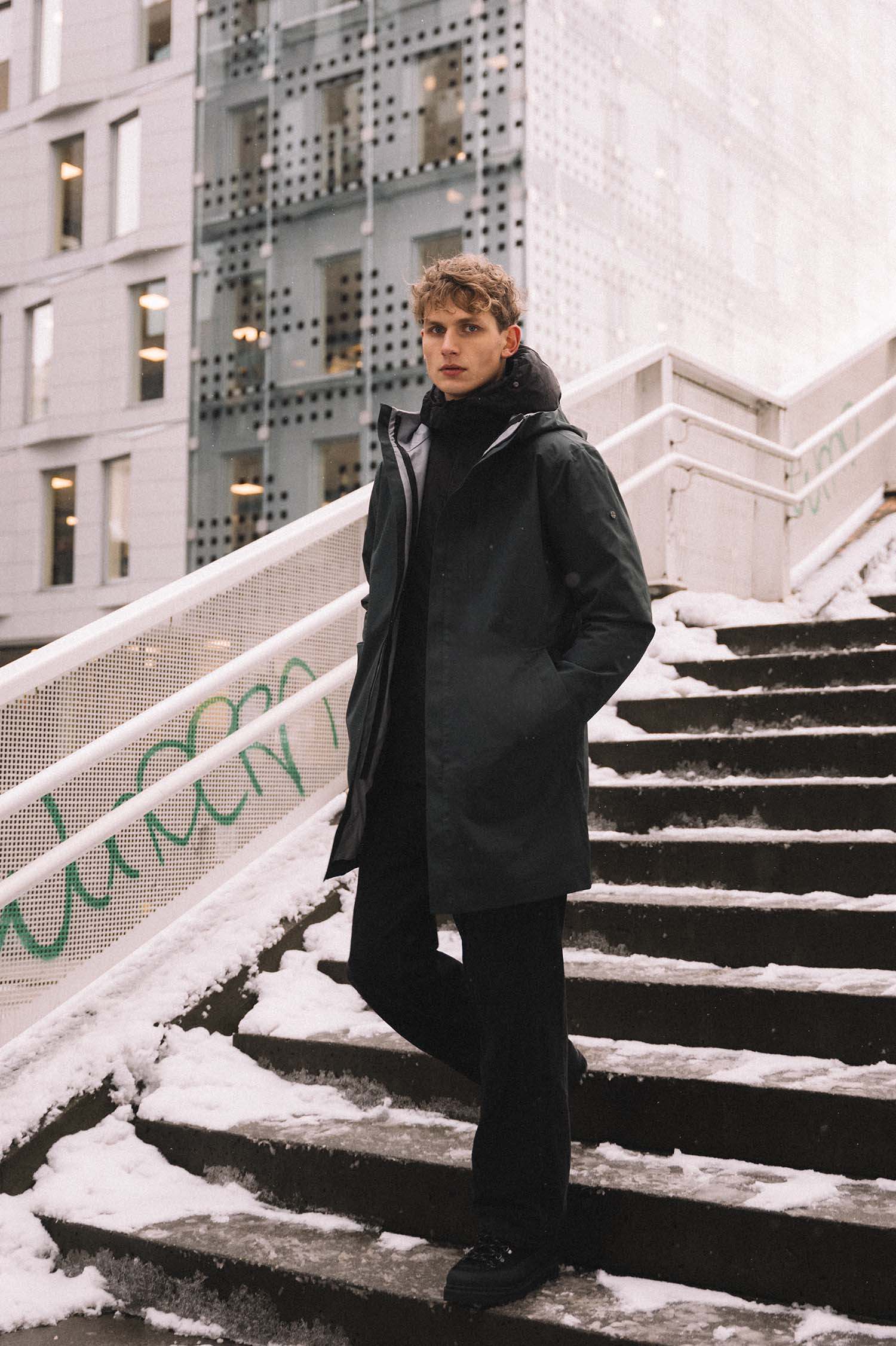 Urban is a Fitted coat, meaning that it is designed to follow the body's natural lines without tapering. Fitted is a versatile shape that feels slightly narrower than a regular fit but with more room than a slim fit.